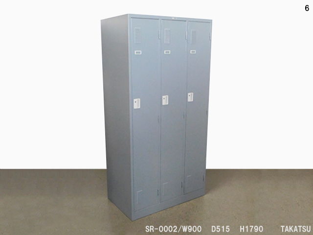 グレー色スチール製3連ロッカー