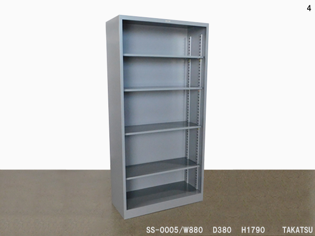 グレー色スチール製オープン書棚