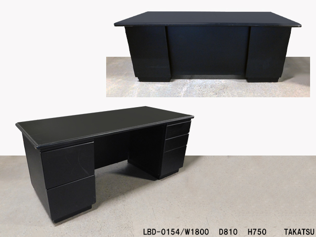 黒色引出し袖付き両袖机