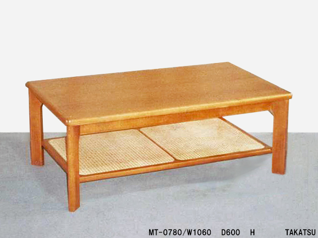 木地木目籐張棚付応接卓子